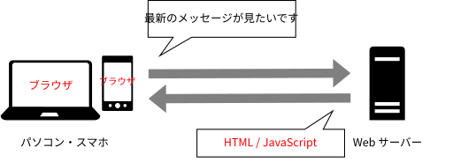 このとき、Web サーバーがブラウザに対して送り返すデータは、HTML や JavaScript といったプログラミング言語で記述されています。 ブラウザは、この HTML や JavaScript を解釈することにより、ウェブサイトを表示しています。